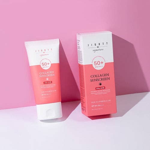 Jigott Collagen Sunscreen – SPF50+ PA+++ Functional Sunscreen Now Available for K-Beauty Wholesale Jigott’s Collagen Sunscreen is a multifunctional daily sunscreen that delivers strong UVA/UVB protection while improving skin elasticity and reducing fine wrinkles. Its lightweight creamy texture absorbs easily with no white cast, making it a top choice for daily skincare routines.