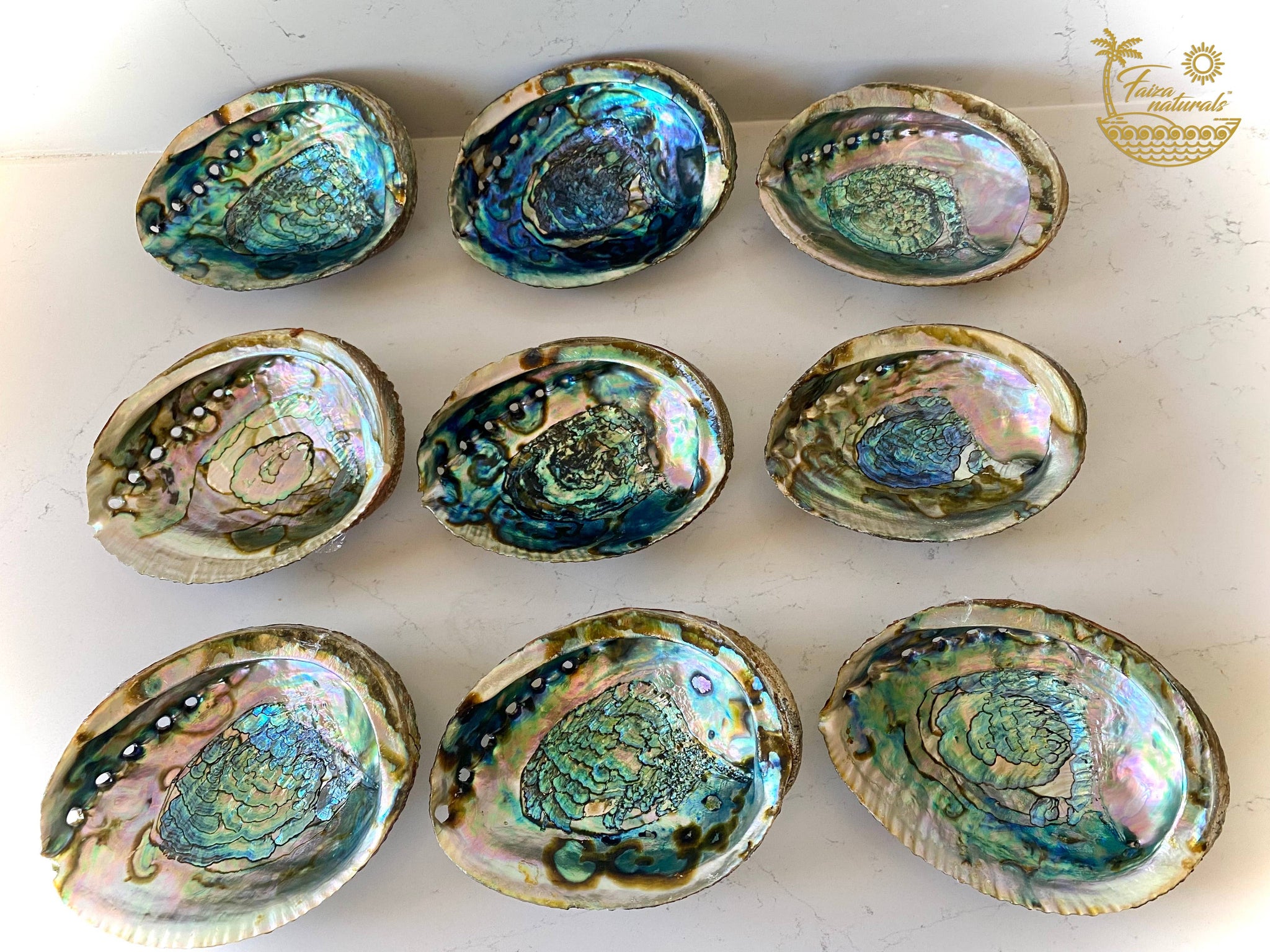 Welcome to Faiza Naturals™. Ethically sourced from a privately owned Abalone and Marine life farm that practices sustainable harvesting. Sizes available: Large (6-7 inch), Medium (4-5), and Small (3-3.5 inch).